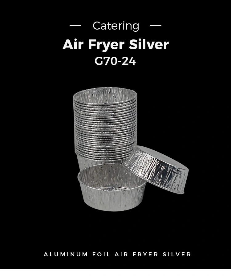 Оваа чаша за печење торта сребрена алуминиумска фолија за храна е внимателно прилагодена од фабриката Yunchu, изработена од висококвалитетен сребрена алуминиумска фолија, модел број G70-24. Тој е дизајниран да им служи на мали делови од храна, како што се закуски и желе, совршено задоволување на потребите на современите потрошувачи за мали делови од различна храна. Погодно е да уживате сам или да споделувате со другите.