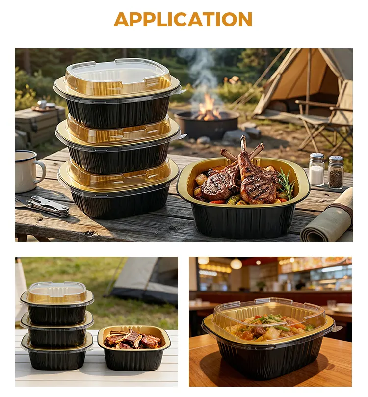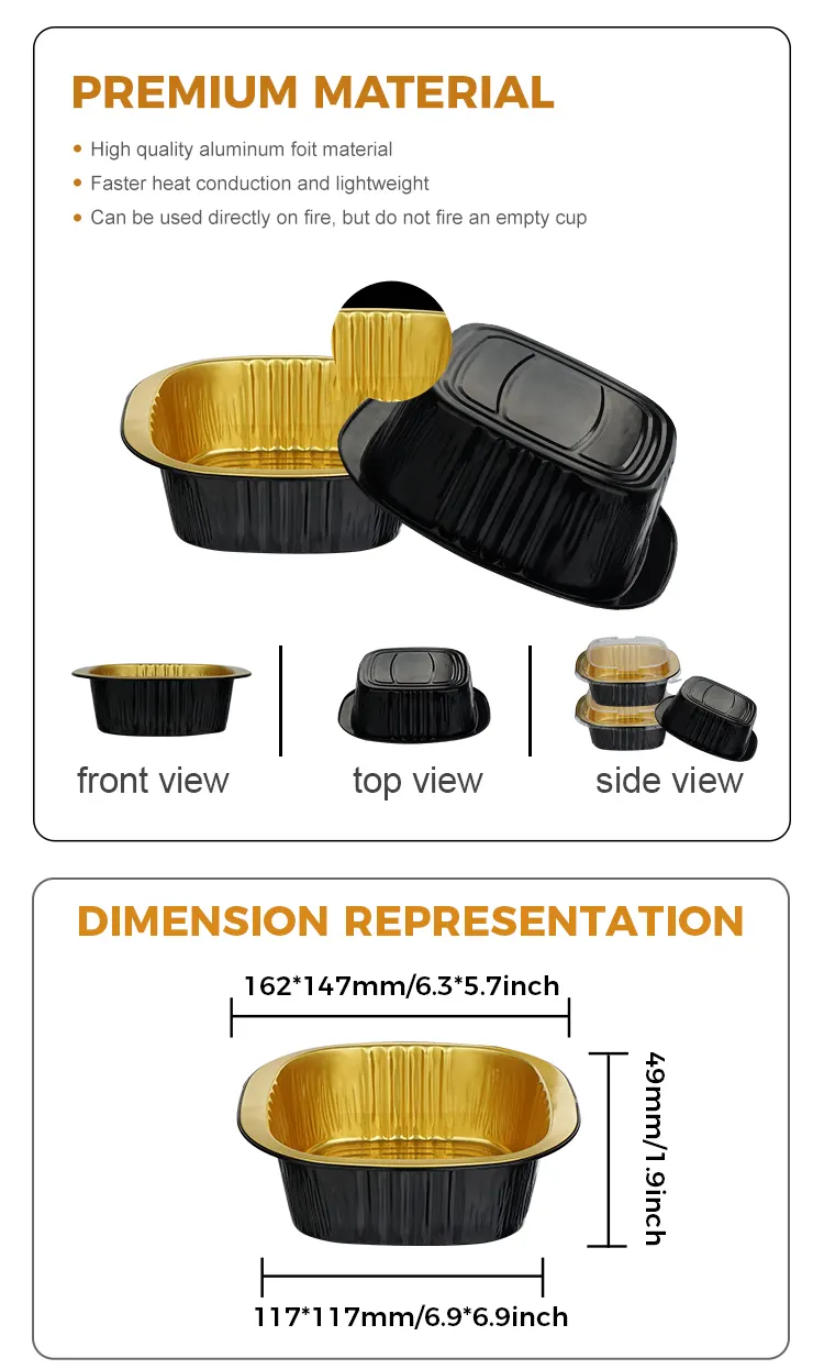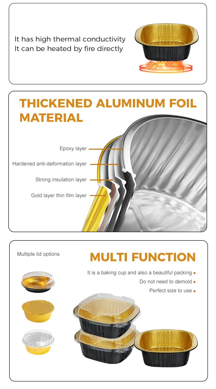 Жешки тагови: Бинаурални квадратни кутии за еднократна употреба, црно златни контејнери од алуминиумска фолија