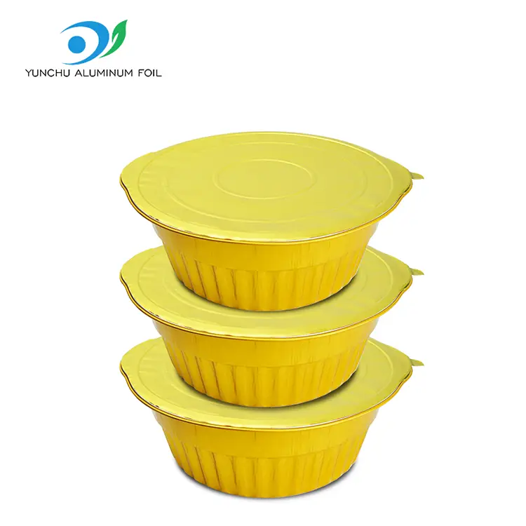Disposable Camping Golden Round Aluminum Foil ContainersDisposable Camping Golden Round Aluminum Foil ContainersDisposable Camping Golden Round Aluminum Foil Containers