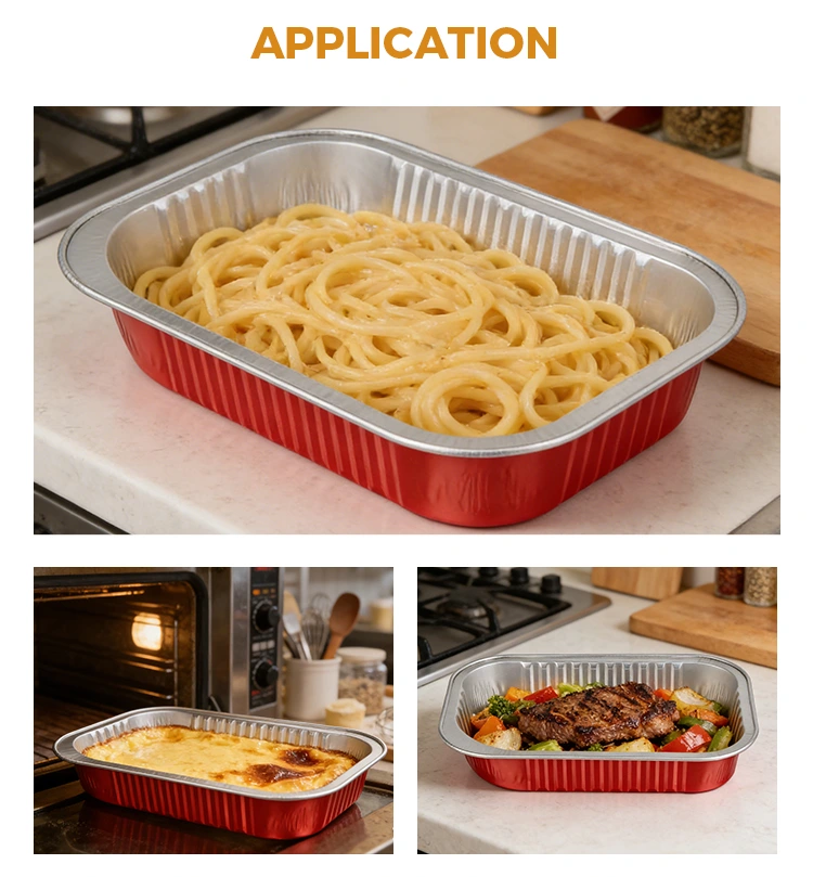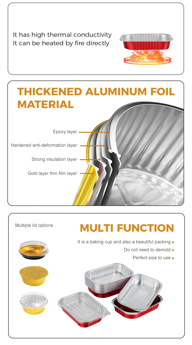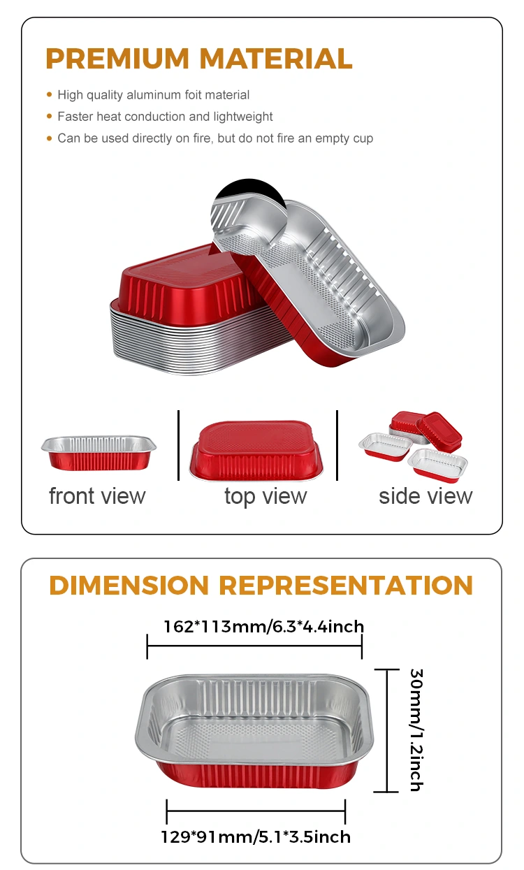 Спецификациите на контејнерите со црвена квадратна алуминиумска фолија за еднократна употреба за угостителска пломба се разновидни (со опции за различни капацитети), кои се движат од мали порции оброци, специјални закуски, до јадења и супи за семејни собири, од кои сите може прецизно да се усогласат. Функцијата за еднократна употреба ја елиминира потребата за чистење, намалувајќи ги трошоците за работна сила и трошоците за материјали за чистење за угостителските претпријатија. Исто така, ја елиминира маката при чистење после оброк во сценарија како што се семејни собири и активности на отворено, што го прави ефикасно, практично и без стрес.