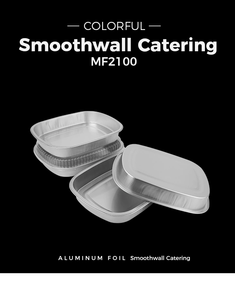 4. Тавчињата за храна од алуминиумска фолија за носење, квадратни парчиња, имаат едноставни и уредни линии, надополнети со модерен сребрен сјај. Може да ја подобри визуелната привлечност на храната и севкупниот квалитет, помагајќи да се зајакне професионалниот и луксузен имиџ на брендот.