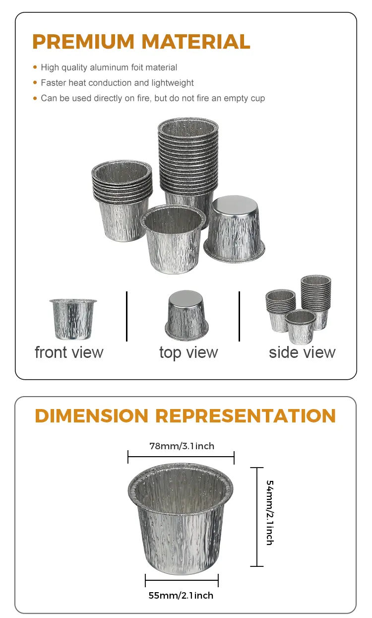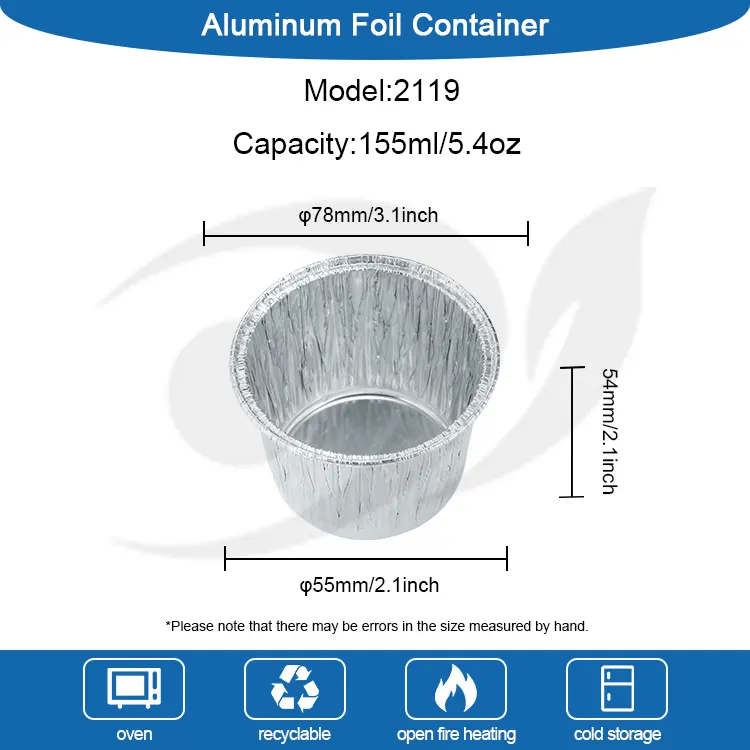 Контејнер со сребрена алуминиумска фолија за еднократна употреба за чашка за колачи од производителот Yunchu е направен од алуминиумска фолија со висока чистота за храна. Тој е подложен на строго тестирање на квалитетот и нема мирис и нема штетни адитиви. Директниот контакт со состојките обезбедува повеќе мир на умот, заштитувајќи го секој залак сладост и здравје. Процесот на задебелена алуминиумска фолија создава цврсто тело на чаша што не е лесно да се деформира или скрши. Може да се користи за разни теста за колачи, мус, пудинг и други состојки. Може да издржи високи температури до 250°C и отпорност на ниски температури до -20°C за печки, фрижидери, фритези за воздух и други апарати. Може добро да се прилагоди на печење, ладење и замрзнување. Нема потреба од замена на кутијата од алуминиумска фолија и нема премногу мачни чекори. Класичниот кружен дизајн, телото на чашата е тркалезно и мазно, а соодветниот сребрен метален сјај не бара дополнителна декорација. Може да се сервира директно по печењето и ќе има ефект на презентација на ниво на продавница за десерти. Устата на чашата е ситно завиткана, што ја прави мазна на допир и не ги чеша рацете. Тоа го спречува истекувањето на тестото кога ќе се истури и го олеснува расклопувањето.