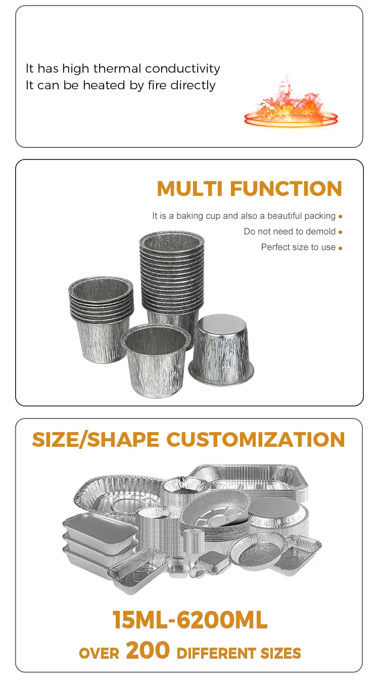 • Кружни чаши за торта за еднократна употреба Контејнери за храна од сребрена алуминиумска фолијаКружни чаши за торта за еднократна употреба Контејнери за храна од сребрена алуминиумска фолија