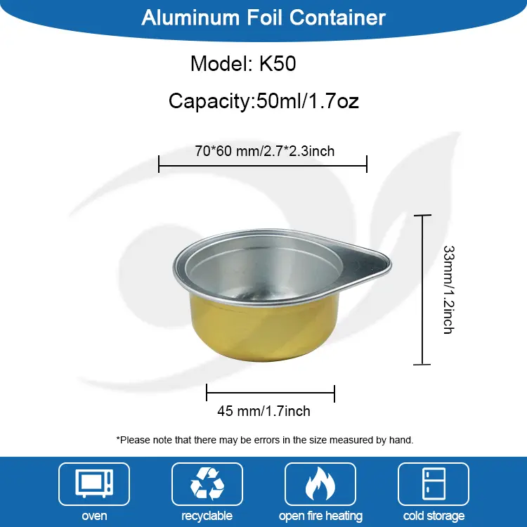 Добавувач на алуминиумска фолија Yunchu K50 Топлинско запечатување Капсула за празна кафе без силиконски заптивки Горна површина: 70*60мм, 2,7*2,3 инчи, основа: 45мм, 1,7 инчи, висина: 33 мм 1,2 инчи, може да се притисне 1.90 мл кафе на целата храна (неспресо), пакувано еспресо во прав или исплакнете со азот за продолжен рок на траење.