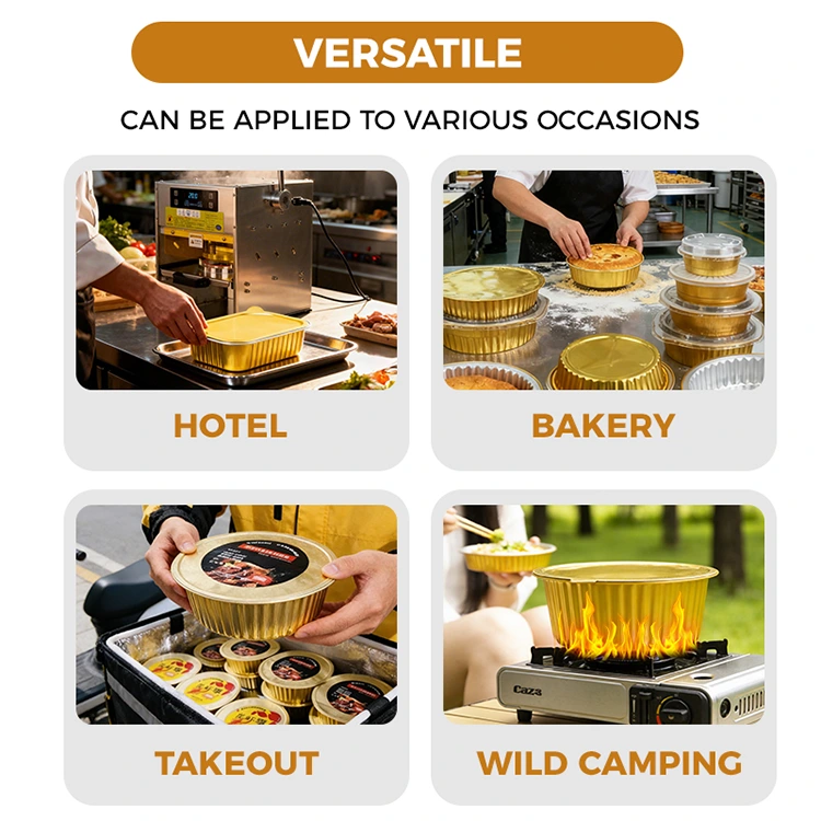 Посеопфатни сценарија: Угостителска индустрија: испорака на производи од висока класа, порции за банкет, претходно подготвено пакување на храна, комбинирање на квалитет и практичност; Претприемништво со храна: мали работилници за закуски, преработка на сос, е-трговија на свежа храна, постигнување професионално пакување по ниска цена; Фестивалски подароци: Божиќ, пролетен фестивал, фестивал на средината на есента и други фестивалски кутии за подароци за храна. Златниот изглед ја подобрува празничната атмосфера, а запечатениот дизајн обезбедува свежина на подароците.