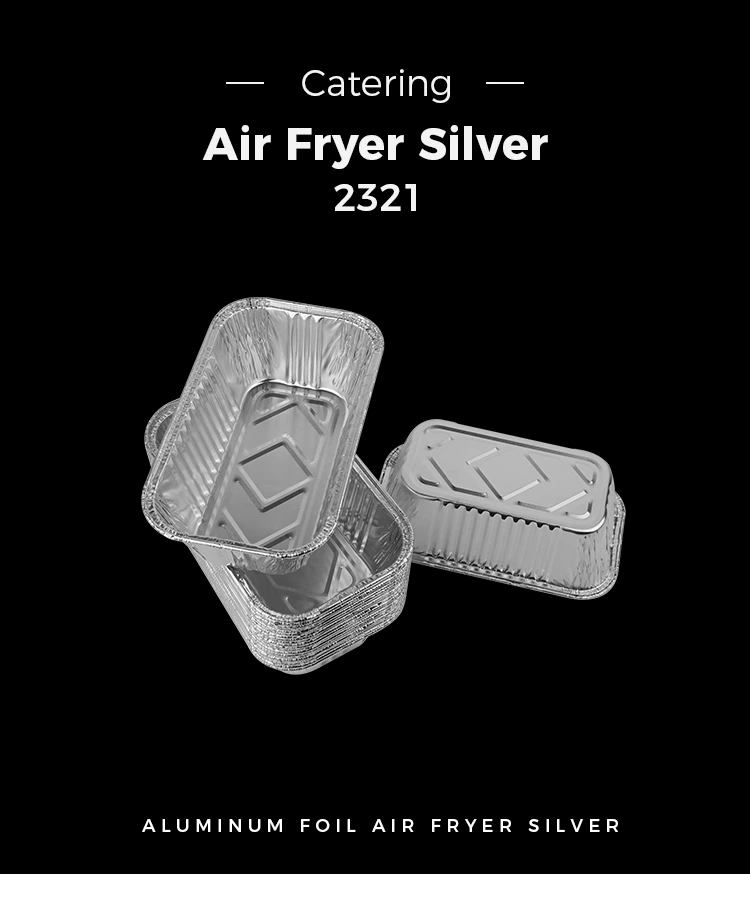 • Правоаголен воздух Фрајер Сребрена сребрена алуминиумска фолија контејнериПравоаголен воздух Фрајер Сребрена сребрена алуминиумска фолија контејнери