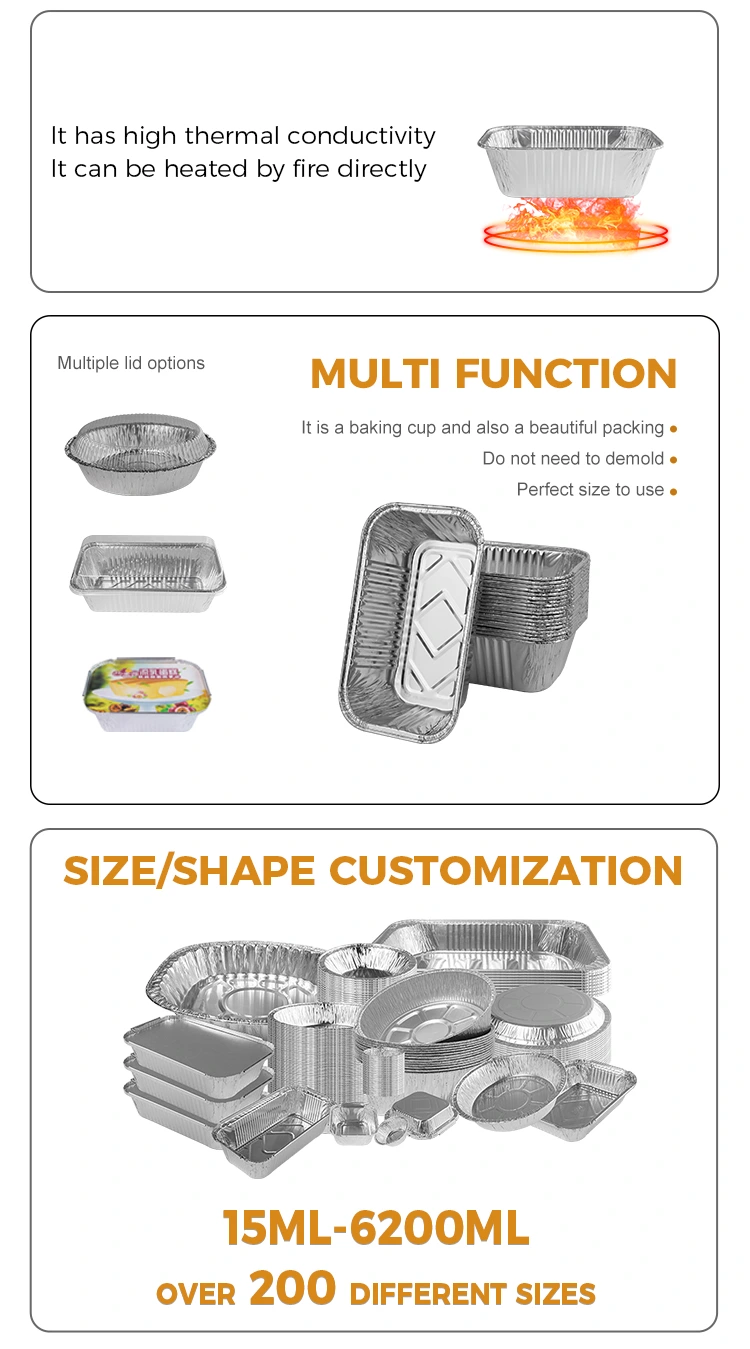 Контејнерите за алуминиумска фолија на правоаголен воздух Сребрен алуминиум, произведени од снабдувачот на алуминиумска фолија на Јунку, е погоден за многу сценарија, како што се нарачки за угостителство, пекари колачи, семејни закуски и ресторани. Контејнерот е изработен од алуминиумска фолија од алуминиумска храна, обезбедувајќи безбедност за време на процесот на печење храна. Покрај тоа, овој сад е исто така погоден за поставување храна, сортирање на овошје и зеленчук и дегустација на закуска за трговски центар. Контејнерот е интегриран како целина, а дизајнот на Хеминг е внимателен за да избегне гребење на рацете. Повеќе големини се достапни за да изберете за да одговараат на различни сценарија за употреба. Ако имате какви било прашања или ви требаат повеќе информации, слободно контактирајте не.