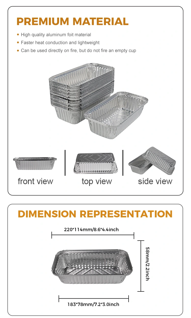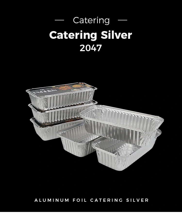 • Правоаголна скара задебелена сребрена алуминиумска фолија контејнериПравоаголна скара задебелена сребрена алуминиумска фолија контејнери
