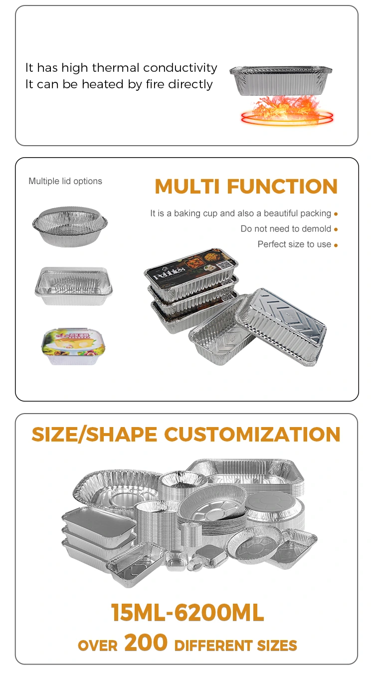 Добавувач на алуминиумска фолија на Yunchu, правоаголна скара задебелена сребрена алуминиумска фолија, контејнери, долготрајни отпорни на печење, отворен пламен достапен, надградена висина за да се спречи допирање на wallидот на тенџерето, засилен дизајн за да се спречи супата да не тече, храната не е лесно да се држи, полесно да Се користи како контејнери за јадење, еднократна употреба е без загриженост и чистење, нема потреба да се чисти и хигиенски по употреба, користејќи валкана вредност за рециклирање на алуминиумска фолија, во однос на контролата на квалитетот, ние строго го следиме секој чекор на производство, за да се осигураме дека сите производи ги исполнуваат националните стандарди за безбедност. Компанијата има добиено сертификат за безбедност на материјали за пакување со алуминиумска храна издадени од државата и го помина германското сертификација на ERP, сертификација на EU SGS и сертификација ISO9001.