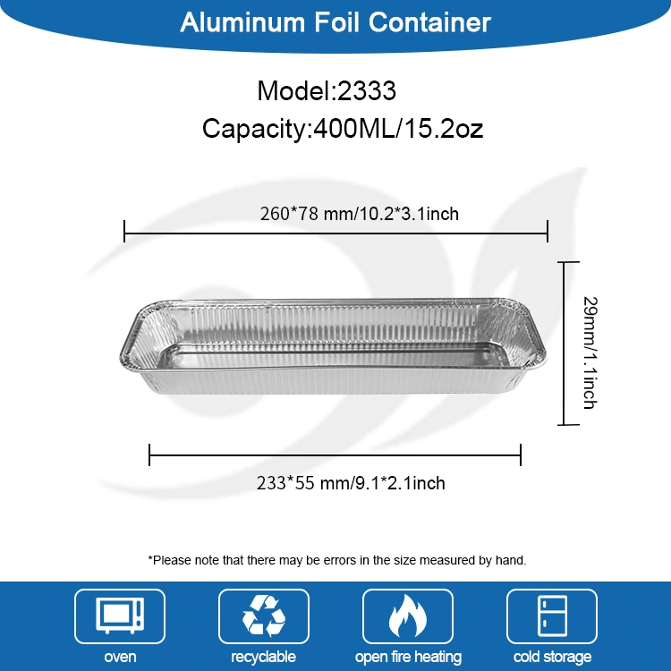 Yunchu aluminum foil supplier's Rectangular bread air fryer Silver Aluminum Foil Containers, the tooth mouth edge sealing is tight, the curled edge design is strong and durable, the geometric shading is not easy to deform, thickening and deepening high temperature heating resistance, non-toxic and odorless, uniform thermal conductivity, thickened aluminum foil high temperature resistance, oil and anti-sticking, може да ја контролира вкусноста на храната. Различни функции, Вкусни не се менуваат единечни, состојките се менуваат, различни спецификации ги задоволуваат различни потреби, се достапни повеќе стилови за да се задоволат вашите различни потреби, се менуваат состојките и се менуваат различни спецификации.