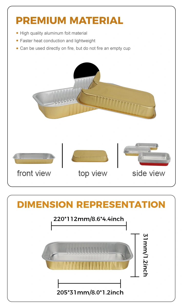 Жешки тагови: Правоаголни златни контејнери за печење со мазен ѕид од алуминиумска фолија