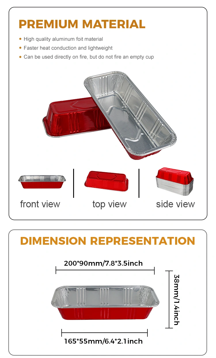Жешки тагови: Правоаголни црвени контејнери за пекарница Сребрена алуминиумска фолија контејнери