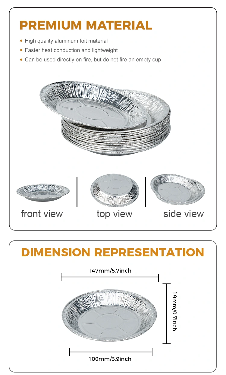 Контејнер за храна од алуминиумска фолија од алуминиумска алуминиумска фолија, кој има карактеристики на хигиена и заштита на животната средина, е изработен од задебелени и материјали отпорни на корозија, не е лесен за деформирање, може директно да контактира со храна, не се плаши од висока температура, не е изгорена или пасти, и не е лесно да се истура. Може да издржи високи температури до 250 ° C, што го прави погоден за разни методи за готвење, како што се печење со висока температура, печка и скара, без грижа. Повеќе спецификации се достапни за да се задоволат различните потреби за печење со различни големини, овозможувајќи ви лесно да се справите со различни барања за производство на храна.