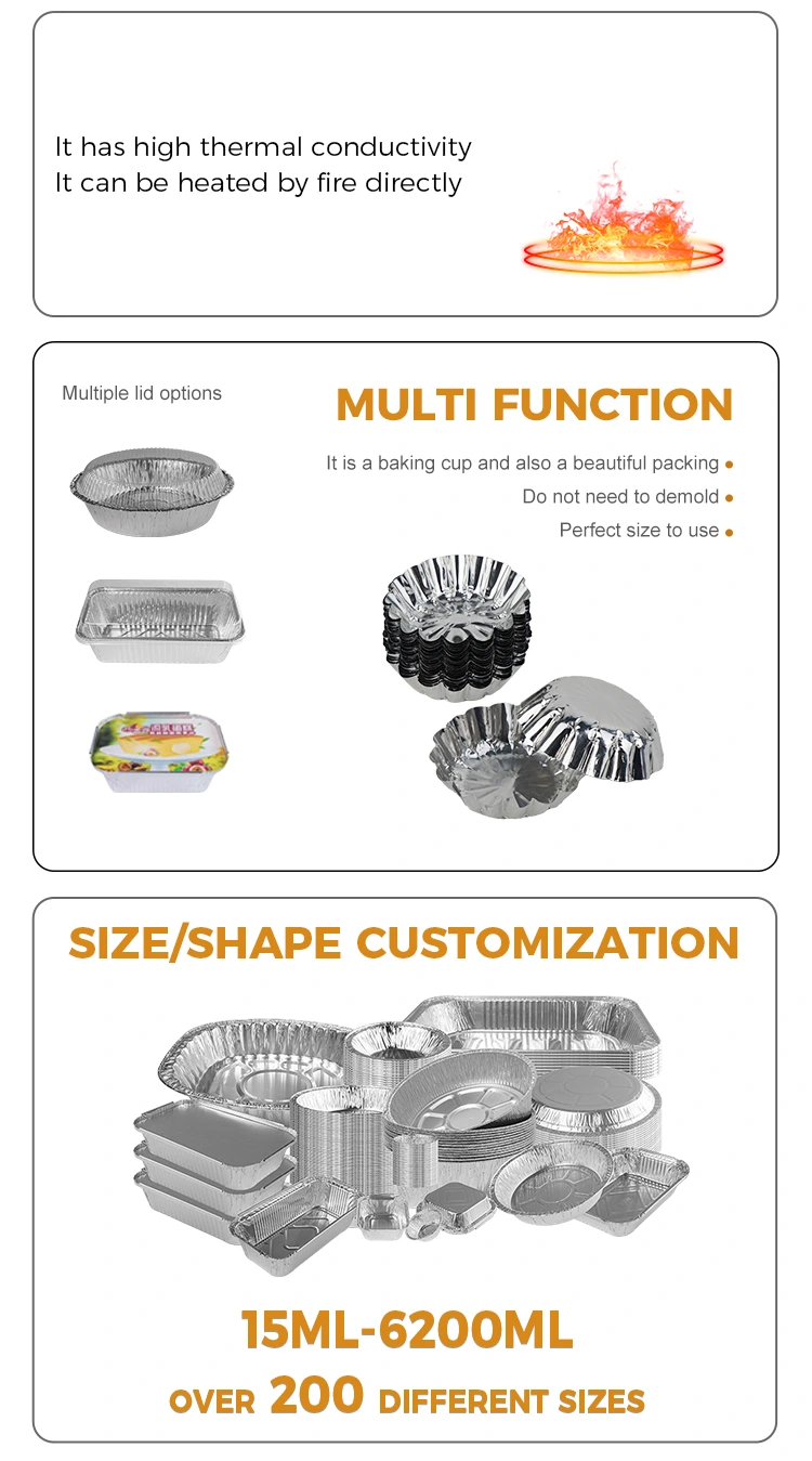 Yunchu алуминиумска фолија снабдувач тркалезна јајца од курва играчка сребрена алуминиумска фолија сад за храна. Оваа лента за јајце -курва не само што изгледа убаво, туку и посветува посебно внимание на практичноста и безбедноста. Оваа лента за јајце-курва има дизајн на чаша што не се лизга со текстура што не се лизга, што го зголемува триењето и ефикасно спречува да се лизне храната, што ги прави резултатите од печењето постабилни. Второ, неговиот дизајн на устата од чипка може да се свитка и складира, што е и заштеда на простор и преносно, што го прави идеален за семејства или мали угостителски установи. Поддршката за јајце-курва е изработена од алуминиумска фолија од алуминиумска храна, која се формира едновремено и не треба да се чисти, што во голема мерка ја подобрува ефикасноста на употребата. Погоден е за сите видови на кујни, без разлика дали се печени курви, колачи, колачи од жолчка, колачи со чинии, може да се претстави совршено. Оваа лента за јајце -курва ја помина сертификацијата за германско ERP, сертификацијата на EU SGS и сертификацијата на системот за управување со квалитетот ISO9001, обезбедувајќи безбедност и заштита на животната средина на производот. Нашите суровини се здрави и еколошки материјали за храна, кои ги исполнуваат меѓународните стандарди за безбедност на храна, за да можете да јадете со доверба.