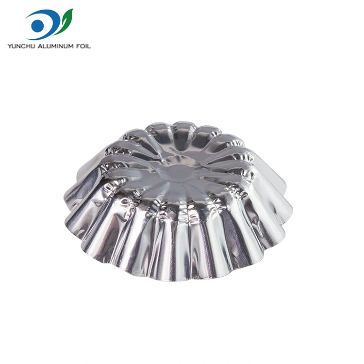 Yunchu aluminum foil supplier Round egg tart toy baking Silver Aluminum Foil Food Container, to meet different tastes, a variety of sizes to choose from, aluminum foil material is safe and non-toxic, made of aluminum foil material, with good thermal conductivity, safe and non-toxic for a variety of uses, better use, easy non-stick mold, smooth cup wall, bamboo skewer gently plucked, easy to eat, strong thermal conductivity, aluminum foil material is not easy to deform, waterproof/oil-proof, good thermal conductivity, can be put into steamer, air fryer, barbecue, etc., a variety of styles are available, different specifications and sizes are available for purchase, Can make egg tarts and other snacks, the finished product is beautiful and generous, one pot can make different flavors of food Закуски, бранови калапи, готовиот производ е убав, не е лесен за деформирање, долгорочно пареа, печењето нема да се деформира или пука, е погоден за изгледот на производот за да се заврши ефектот.